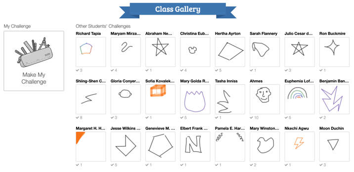 We love this challenge because it allows students to create totally unique challenges while also providing useful restrictions (use a single stroke). And as a bonus, challenge creation is very quick, which means fewer students who have created challenges will be left waiting for their classmates to create challenges for them.